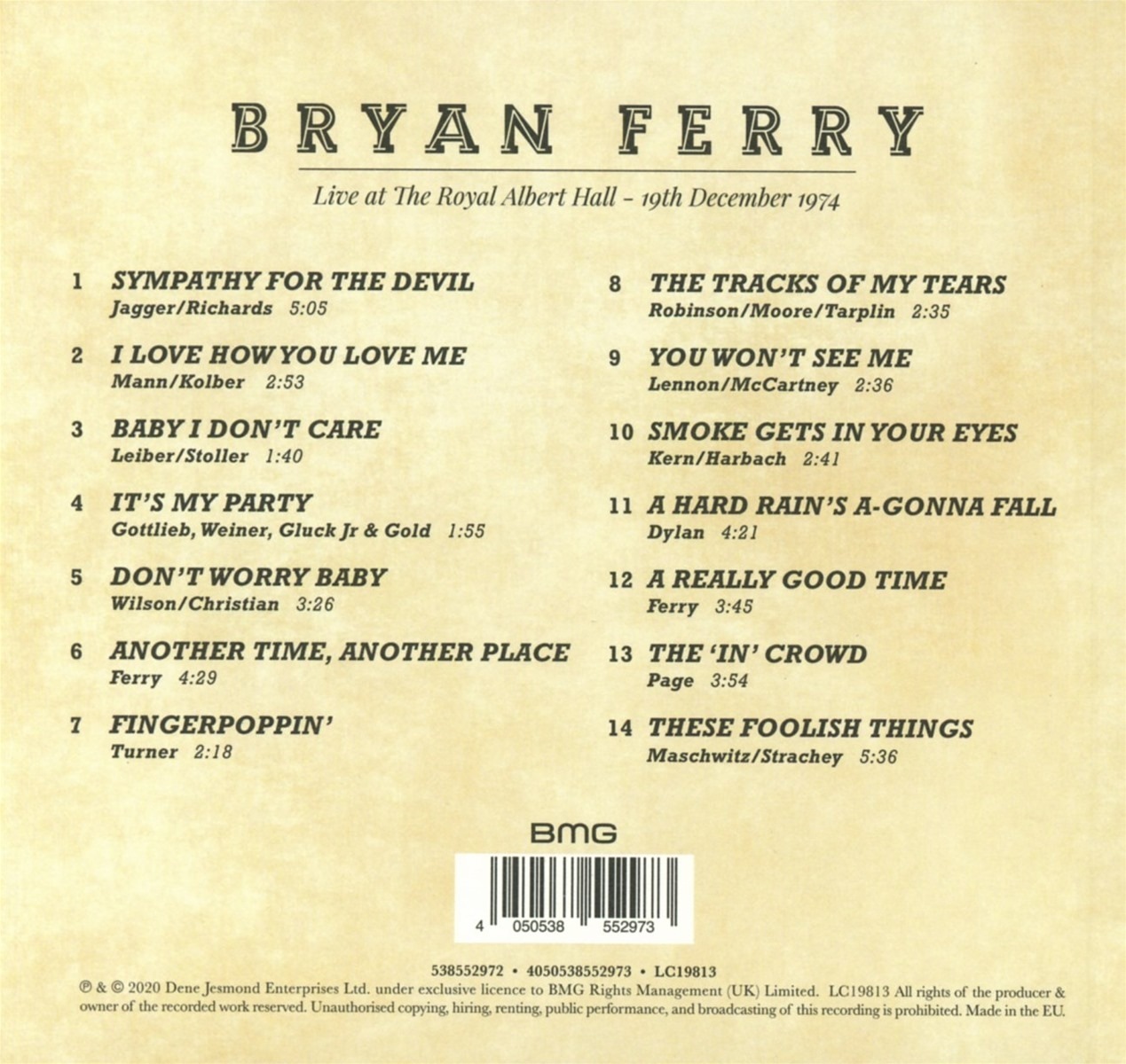 Bryan Ferry Royal Albert Hall 2020 : Musik Cd Live At The Royal Albert Hall 1974 Ferry Bryan 1 Cd Online Kaufen Otto - Bryan ferry, cbe (* 26. . Bryan ferry, cbe (born 26 september 1945, washington, county durham, england) is an english singer and songwriter. September 1945 in washington, england). Bryan ferry nació el 26 de septiembre de 1945 en washington, condado de durham, inglaterra (reino unido).hijo de fred ferry, un trabajador agrÃcola que también cuidaba ponis, bryan estudió bellas artes en la universidad de newcastle y se convirtió en profesor de cerámica en londres, hasta que encontró su verdadera vocación: Discover new country music on cmt. Bryan ferry, cbe (* 26.